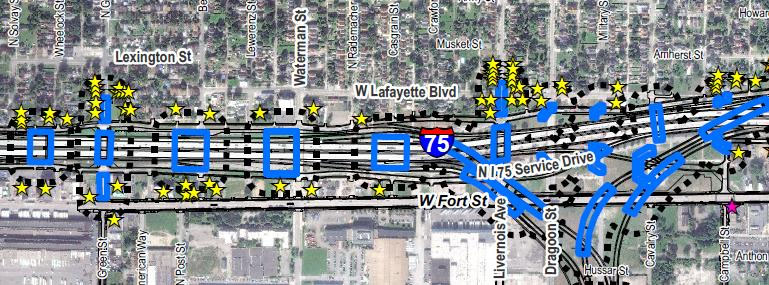 Uno de los componentes del proyecto es la Intersección de Michigan que se conecta con la Interestatal 75. Aproximadamente tres kilómetros o 1.8 millas de la I-75 entre Springwells Street y Clark Avenue, requerirán modificaciones para dar lugar a las rampas que se conectarán al Punto de entrada estadounidense.