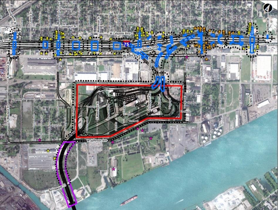 One of the project components is the connection of the US Port of Entry to Interstate-75. This Interchange project covers approximately three kilometres or 1.8 miles of I-75 between Springwells Street and Clark Street and will require modifications to accommodate the ramps connecting to the US Port of Entry (POE). The ramps are designed to minimize the impact of interstate/international traffic on roads in the vicinity of the US POE.