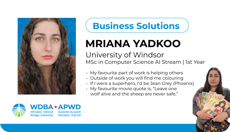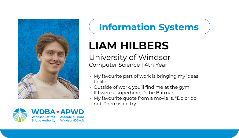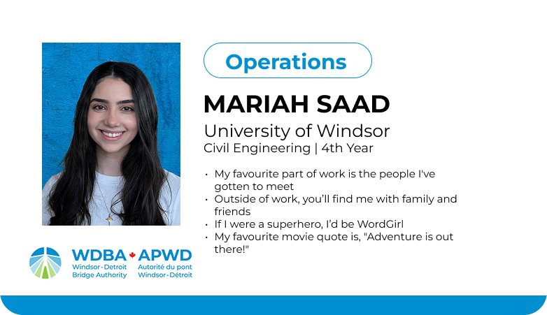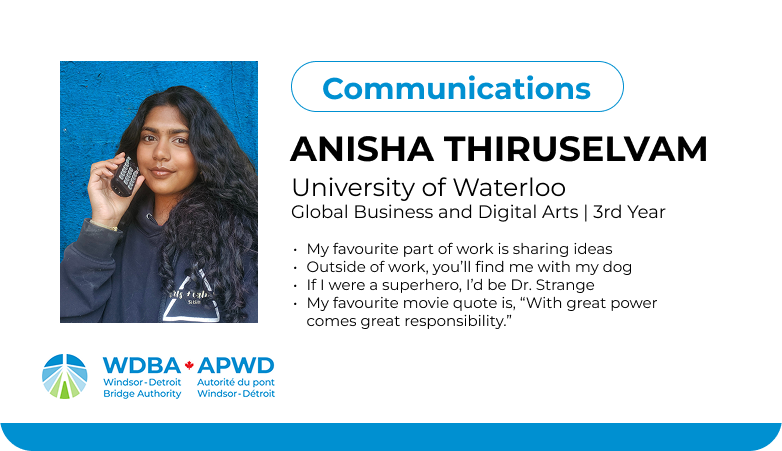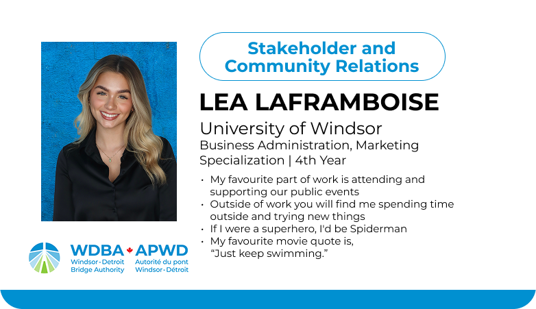 This fall, fifteen students joined WDBA for a four-month term, contributing their talents across a range of departments including operations, engineering, communications, marketing and information technology. Each played a unique role in advancing the Gordie Howe International Bridge project, bringing fresh ideas, energy and new perspectives to the workplace.